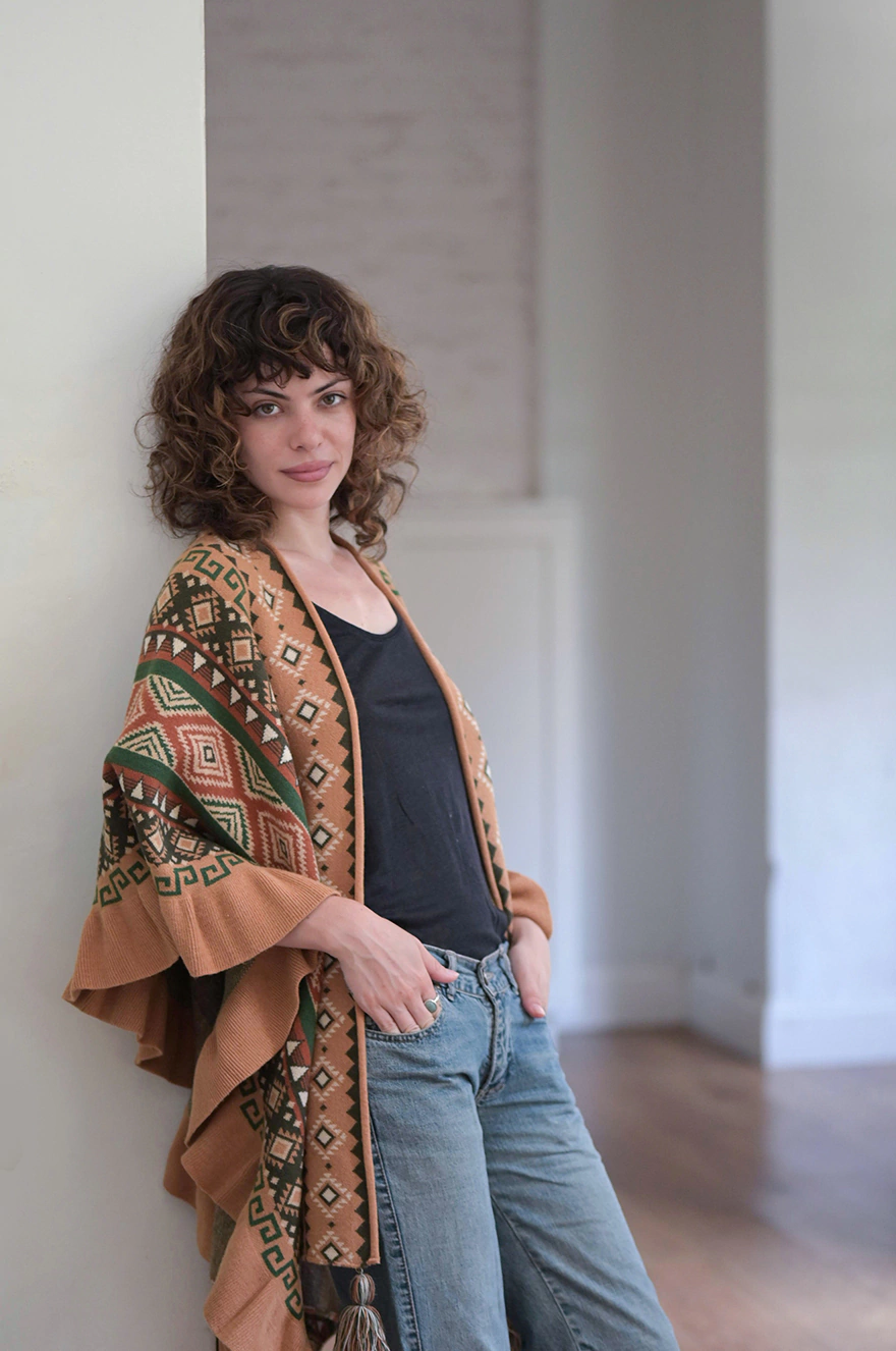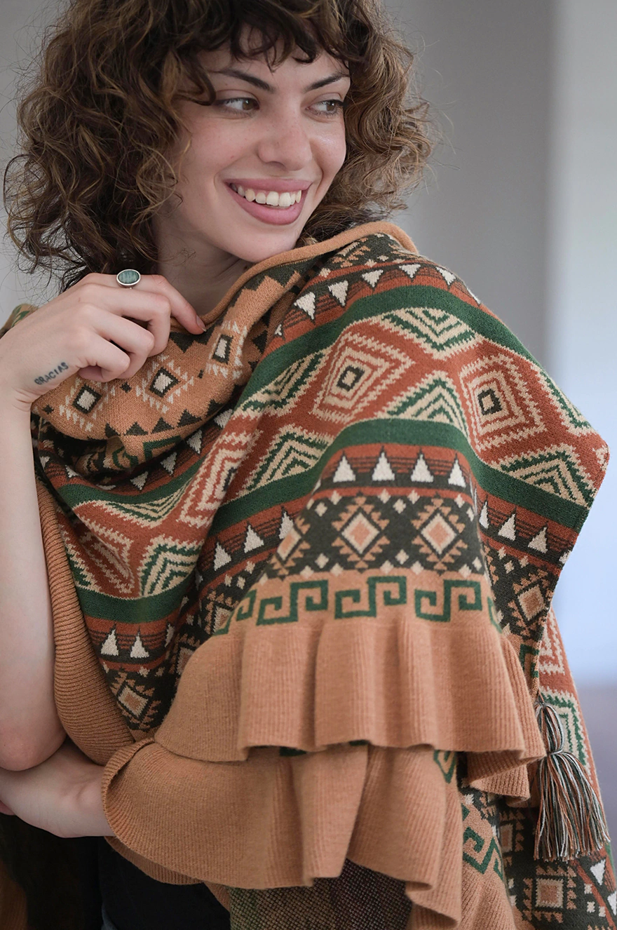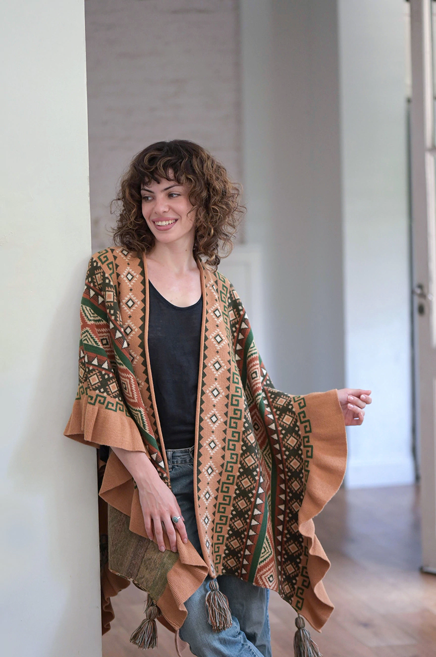 MOLDE: Rectángulo con espalda cerrada y delantera abierta, con volado liso y borlas al tono.