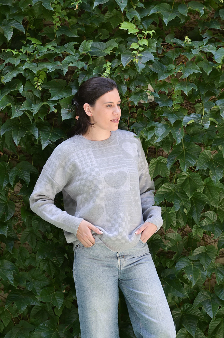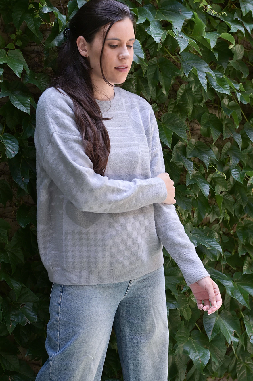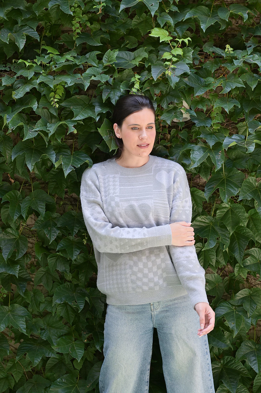 Su diseño destaca por un jacquard muy fino y un elegante cuello redondo. Además, está disponible en cuatro colores para que elijas el que mejor complemente tu estilo.