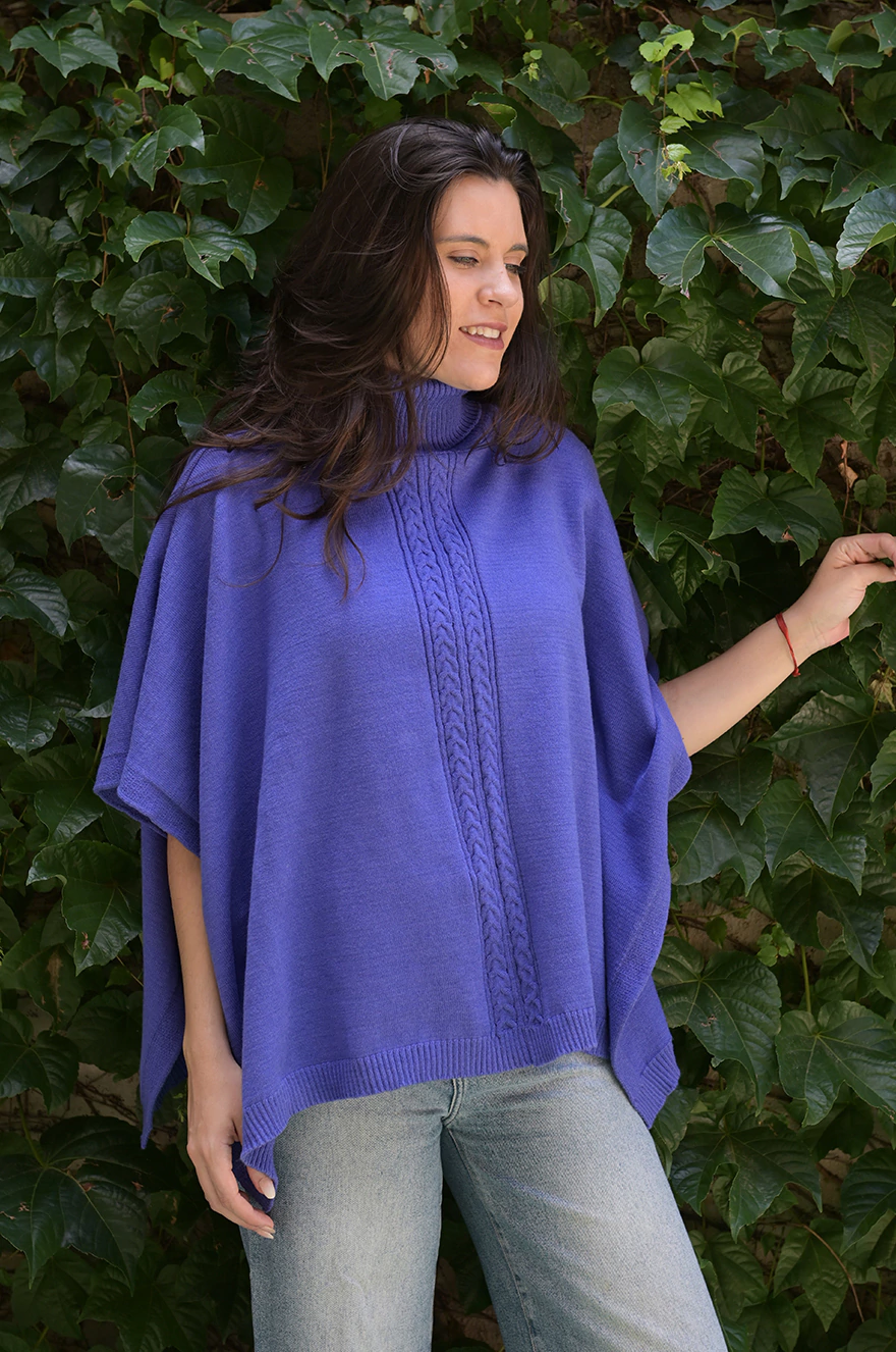 Poncho polerón liso con guarda central trenzada, diseñado para brindar comodidad y estilo en cada uso.