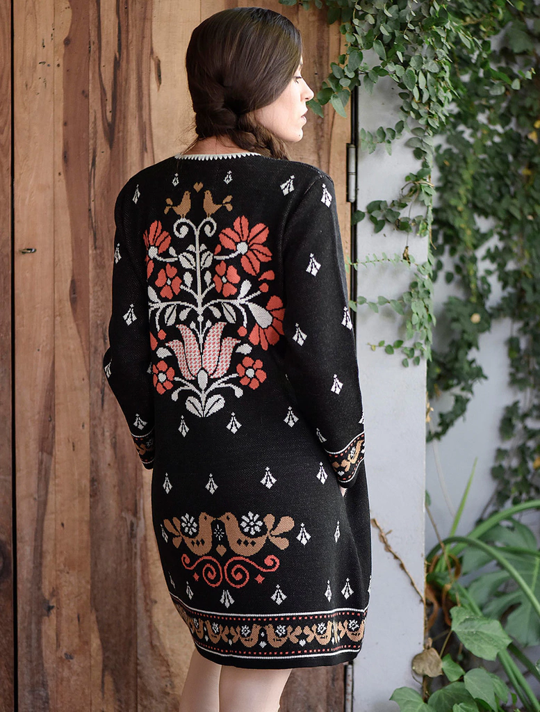 Cuello desmontable, con borde bordado a tono y terminación del mismo color en el saco.