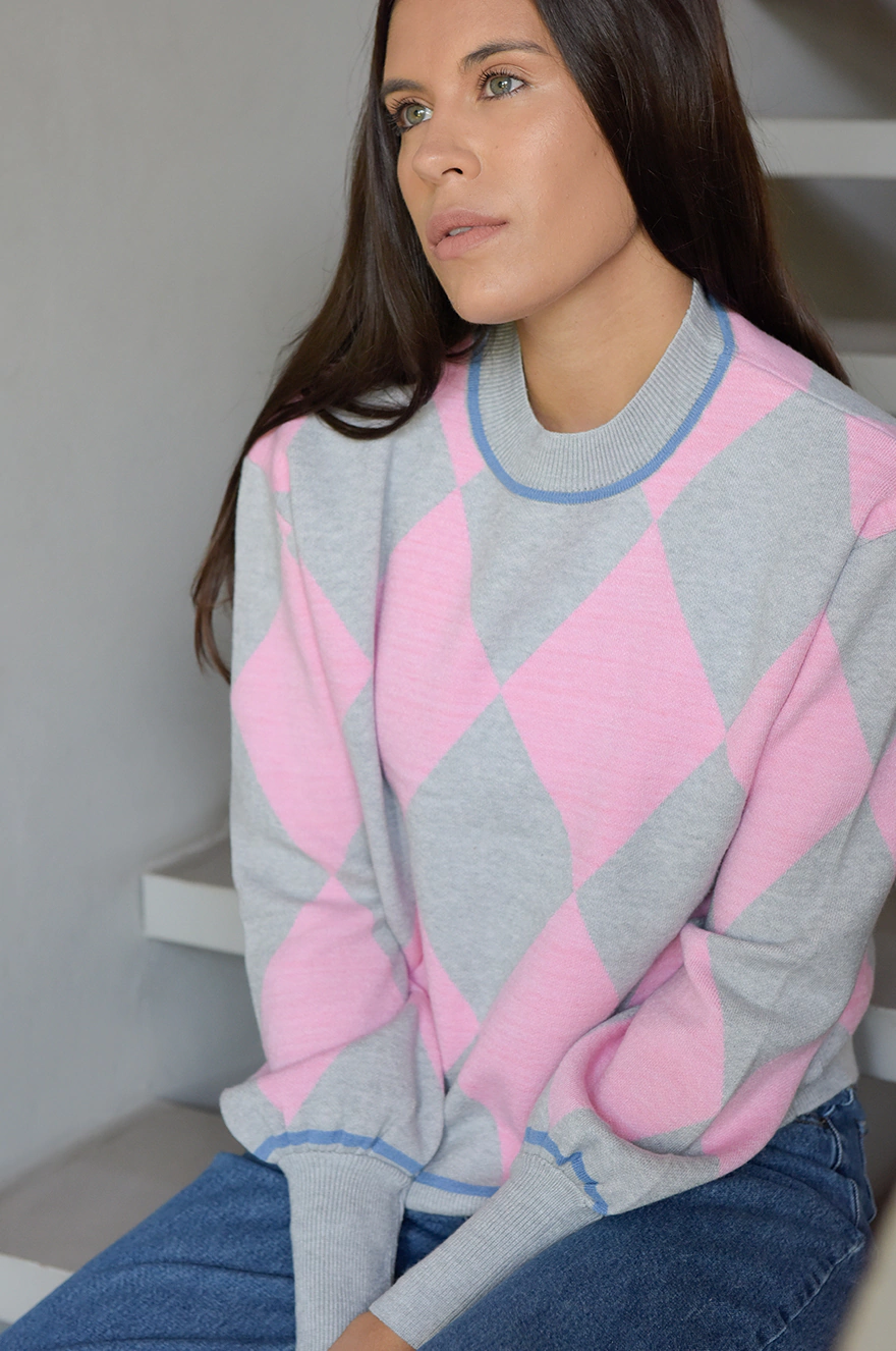 COLOR: gris y rosa (vivo en cuello y mangas celeste)